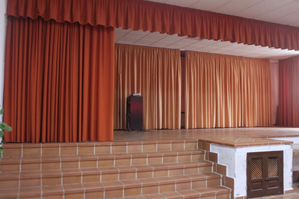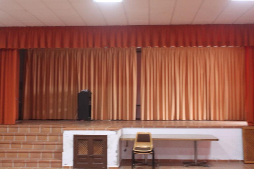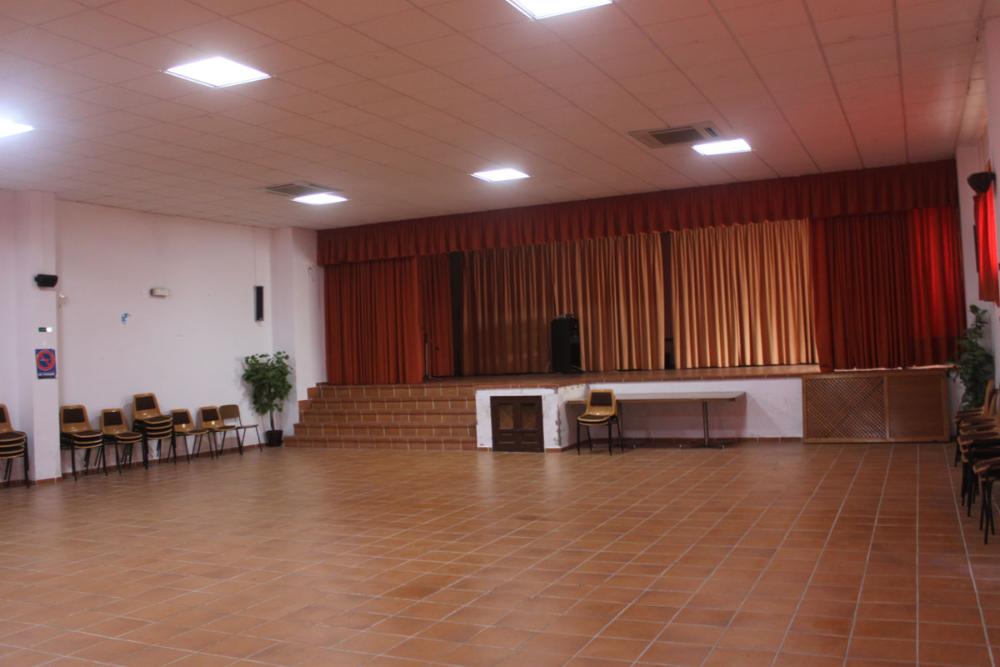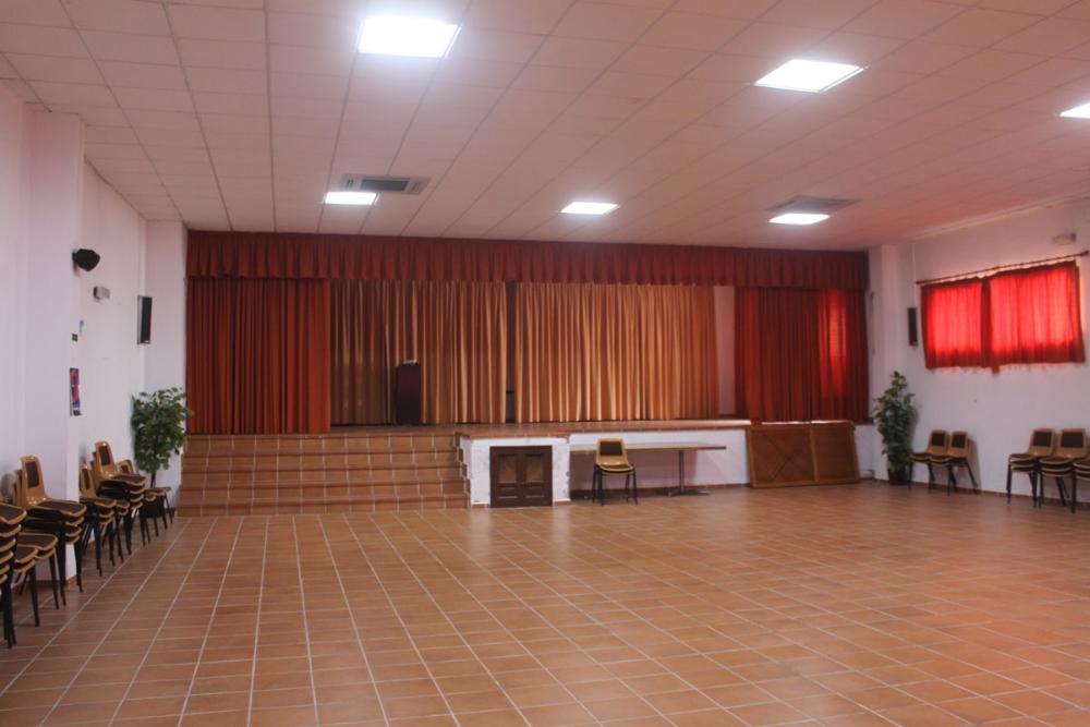 La sala tiene unos 70 metros cuadrados. Tiene un gran escenario donde realizar actividades muy diversas: bailes, teatro, conferencias...