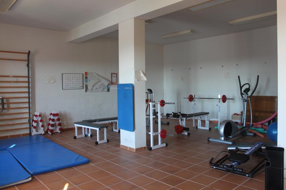 Está dotado de espalderas, colclonetas, muchas máquinas que perimten la realización de distintos ejercicios, pesas etc... También hay juegos y otros accesorios para la práctica de muchos circuitos.