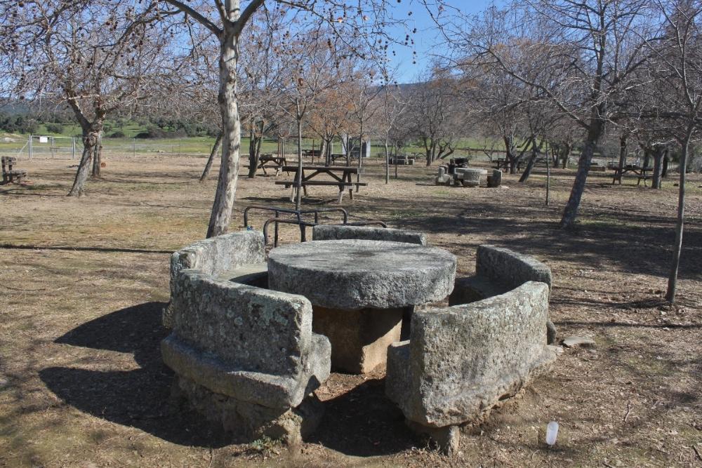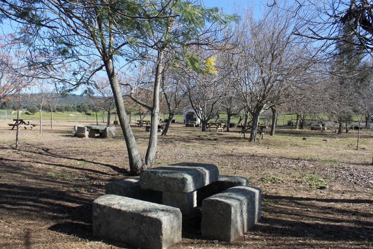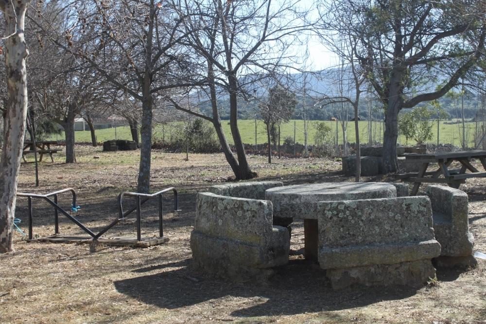 Hay muchas mesas y bancos, algunas barbacoas.... árboles de sombra, columpios, incluso una pequeña capilla a modo de humilladero