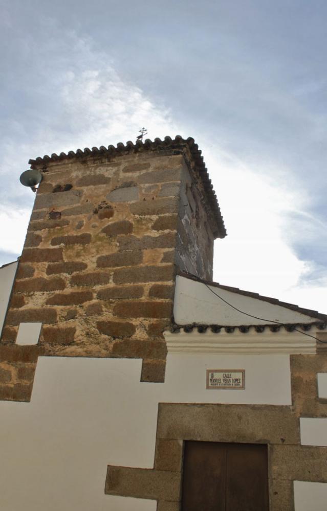 La torre es la parte que mas sobresale, visible a gran distancia y con el aspecto de un centinela parece vigilar el acceso a la población. tiene un artístico pináculo en el remate del tejado a cuatro aguas que lo protege.