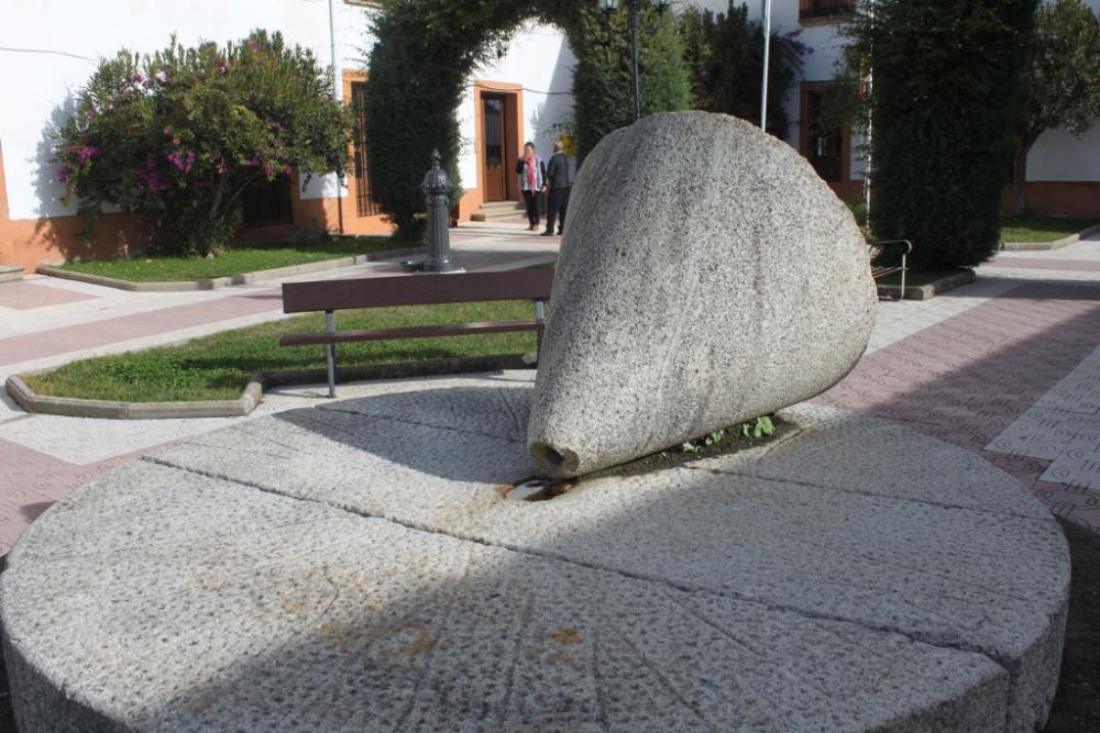 Disponía de una piedra cónica que rotaba sobre una base circular, también de piedra, sobre la que se echaban las aceitunas.