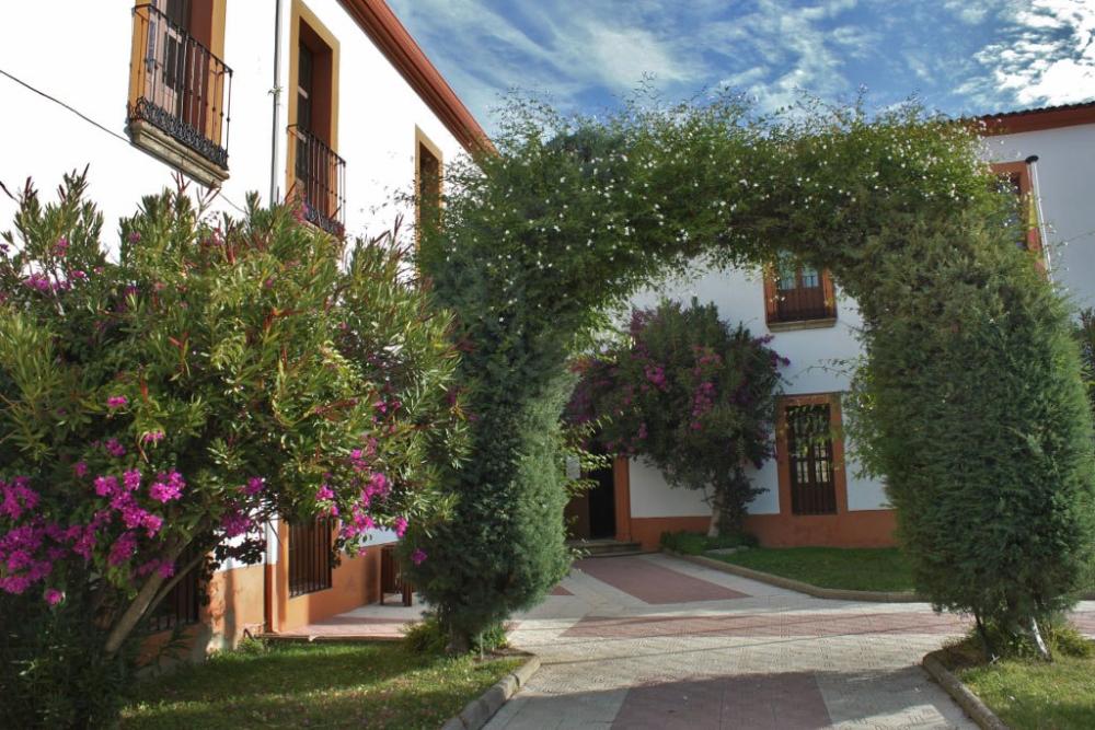 La puerta es estrecha y muy alta, el arco remata al estilo ojival, dando la apariencia de la entrada a un convento. Encima hay un escudo de muchos cuarteles